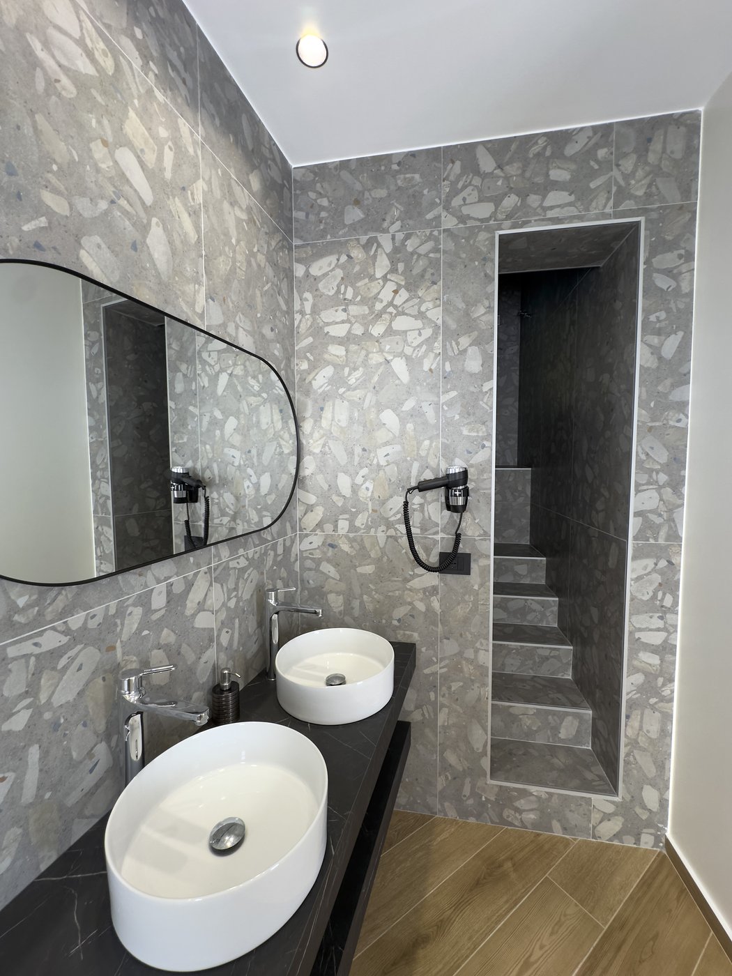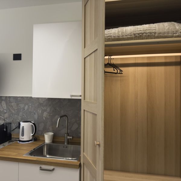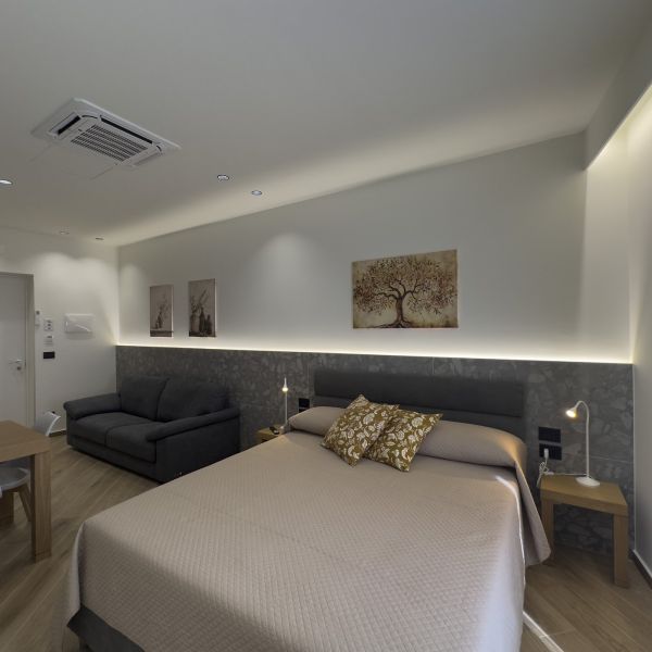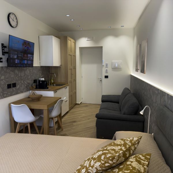 Scegliere la camera Silver significa regalarsi una pausa rigenerante. L'ambiente è progettato per accogliervi con il massimo comfort. Al vostro risveglio, potrete utilizzare il comodo angolo dotato di lavandino, tazze e macchina per il caffè per iniziare la giornata con la giusta energia, senza dover subito uscire dalla vostra oasi privata.